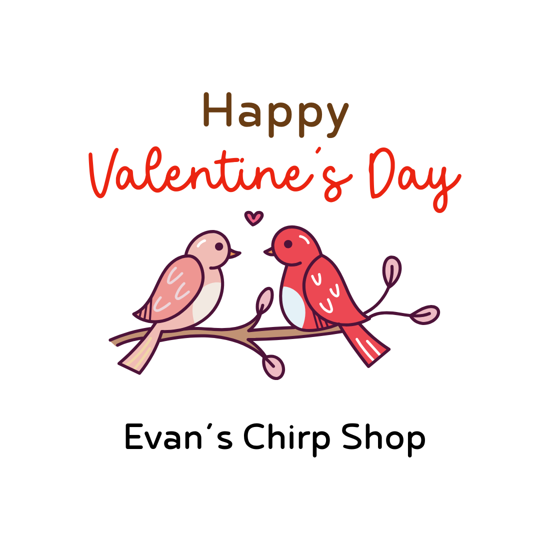 Design per discussion - Top: Happy Valentine's Day / Bottom: Evan's Chirp Shop